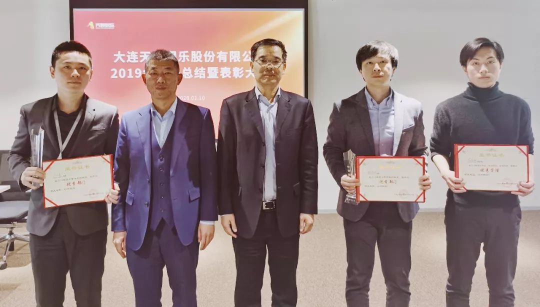 2020年1月10日,,,大连天神娱乐股份有限公司2019年年终总结暨表彰大会在北京召开。。。公司董事长沈中华 、、 、总经理徐德伟出席并讲话。。。公司董事 、、 、副总经理兼董秘刘玉萍 、、 、副总经理贺晗