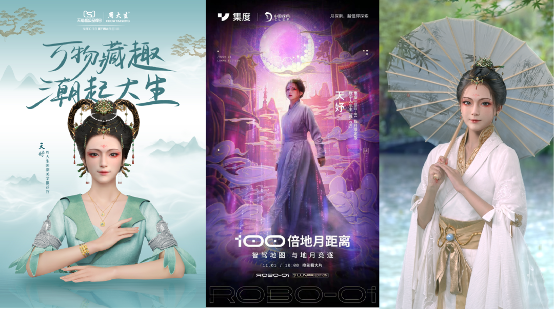 4月22日,,,胜天国际旗下元梦工作室孵化的虚拟数字人天妤在抖音平台发布了第一支视频。。。5月21日,,,在抖音平台上线不到一个月的天妤粉丝突破了100万。。。天妤极具文化底蕴的内容让她频