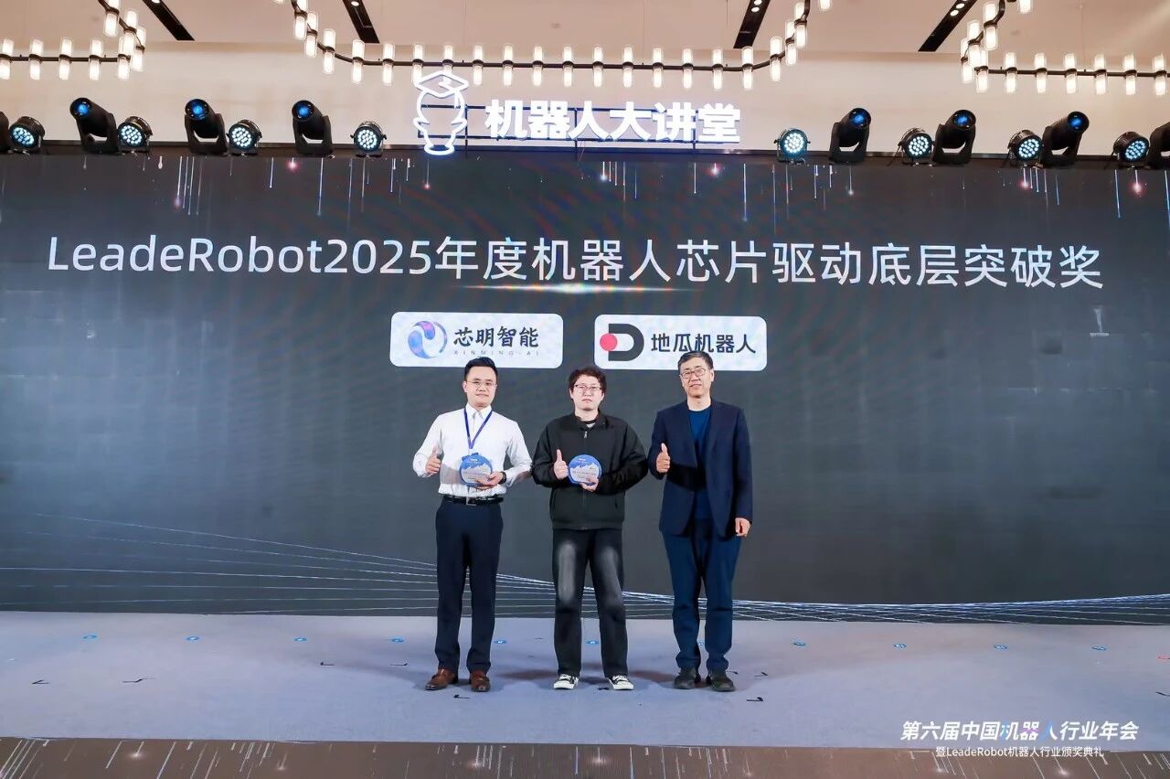 近日,,,芯明凭借其在机器人芯片驱动底层技术的重大突破,,,于2025 LeadeRobot中国机器人行业评选中,,,荣获“机器人芯片驱动底层突破奖”。。。该奖项重点关注机器人的智能“大脑”领域,,,旨