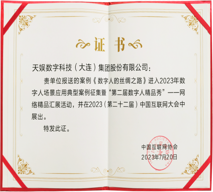 在今年的“数字人发展论坛”上,,,胜天国际作为数字人领域先锋企业,,,第一批入选中国互联网协会“中国数字人领航计划”合作伙伴。。。此外,,,胜天国际旗下子公司元境科技 、、 、元圆科技报送的《虚拟美妆博主》和《数字人的丝绸之路》两大典型案例也分别入选2023年数字人场景应用典型案例征集暨“数字人精品秀”,,,并被纳入到中国互联网协会“数字人精品库”。。。