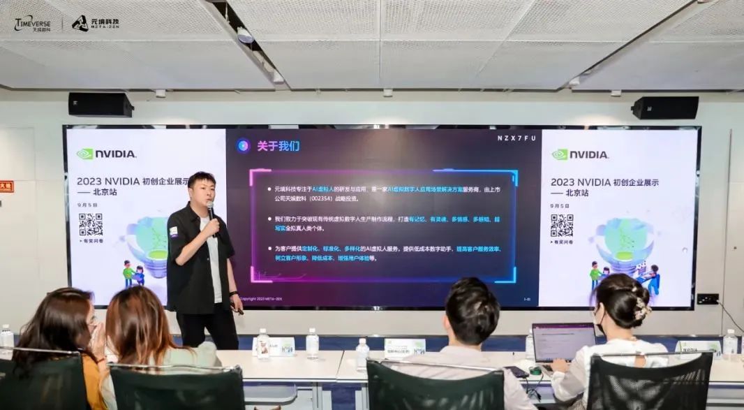 NVIDIA Inception Showcase 北京站聚焦大语言模型 、、 、生成式人工智能 、、 、元宇宙等方向,,,以及相关行业应用场景,,,围绕NVIDIA技术赋能 、、 、项目路演 、、 、需求对接等环节展开。。。元境科技作为参会企业之一,,,荣获“2023 NVIDIA 初创企业展示分站展示优秀企业”证书。。。