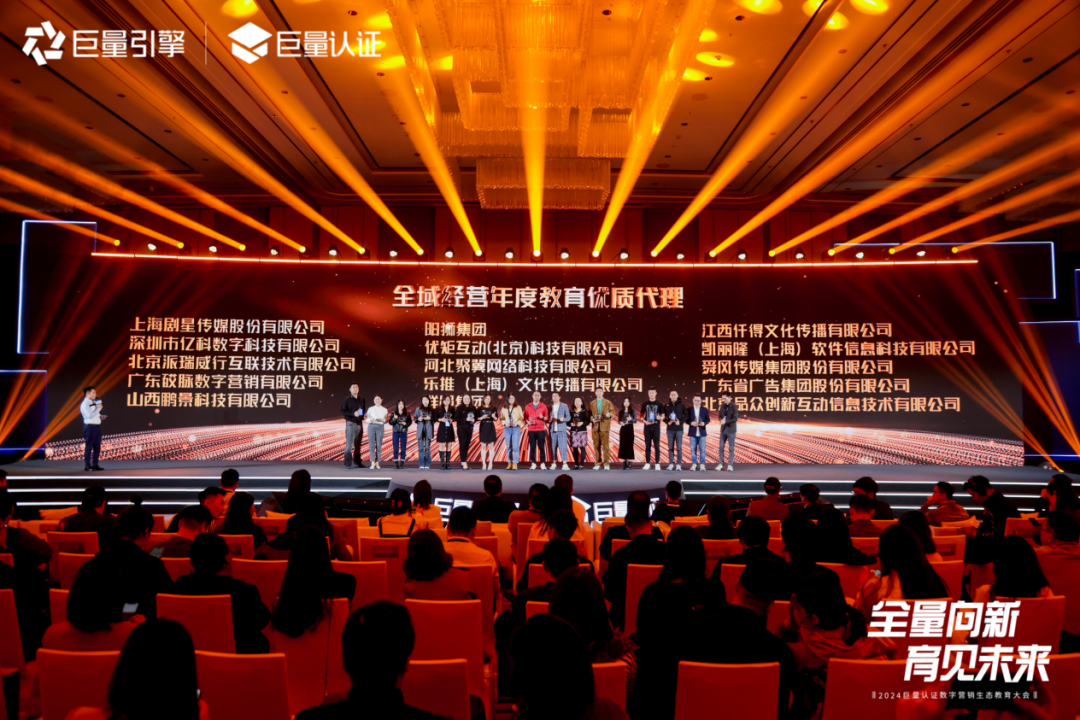 1月17日,,,“全量向新 育见未来——2024巨量认证数字营销生态教育大会”在广东珠海举行,,,鹏景科技荣登2023巨量认证人才生态建设榜单第二名,,,获得「全域经营年度教育优质代理」奖项。。。这一奖项的颁发充分印证了鹏景科技建设数字营销全链路人才生态的能力与决心。。。